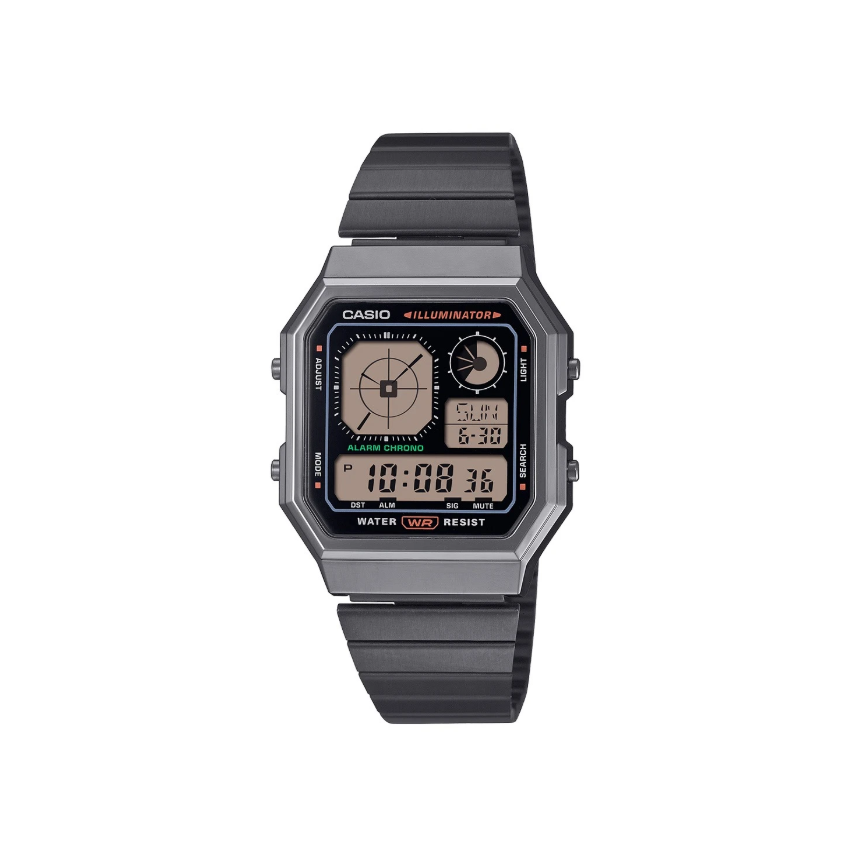 - Този дигитален часовник с емблематичен стил съчетава ретро-футуристичен дизайн с модерна функционалност.