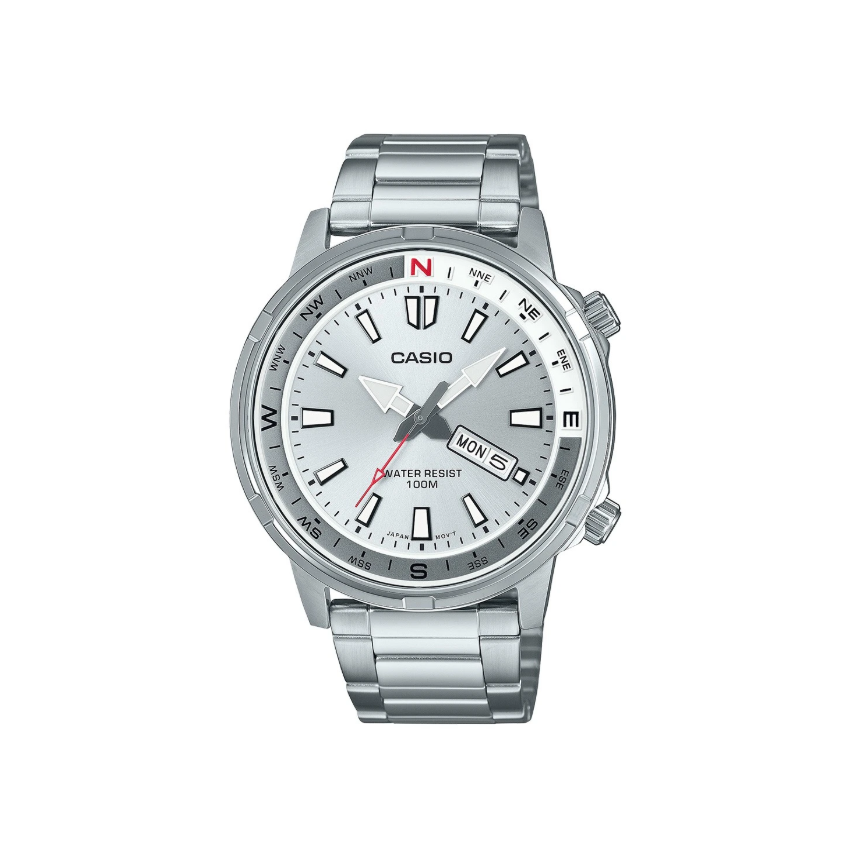- Дисплеят е аналогов в сребрист цвят с класически дизайн, показатели за ден от седмицата и месеца на 4 часа, както и лумeнисцентни стрелки и индекси.