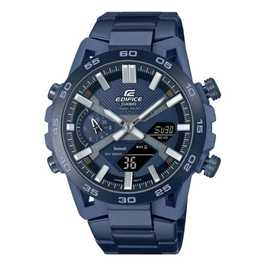 - ECB-2000CB-2A е високопроизводителен хронограф от линията EDIFICE на Casio, проектиран с вдъхновение от моторните спортове.