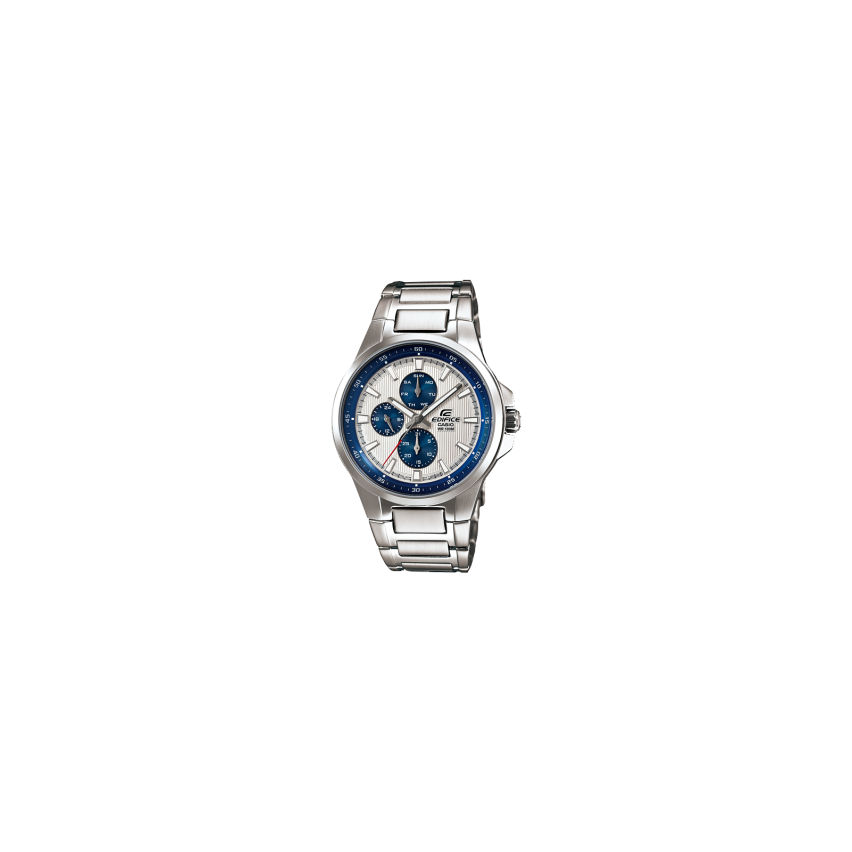 Casio EF-342D-7AVEF е нов модел от серията EdificeКорпусът и верижката са изработени изцяло от неръждаема стомана Casio EF-342D-7AVEF е с луминисцентно покритие, осигуряващо продължително осветяване на тъмно дори и след кратко излагане на светлина Той е аналогов и показва час, минути и секунди Минерално стъкло, устойчиво на надраскване EDIFICE лого е щамповано върху короната, задния капак и закопчалката Притежава много практични функции - хронометър измерване на капацитет: 30 минути, хронограф, и е водоустойчив на 10 bar/ перфектен за плуване и гмуркане с шнорхел/, показва дата и ден от месеца, завинтване на задния капак на часовника, за по-голяма сигурност.
