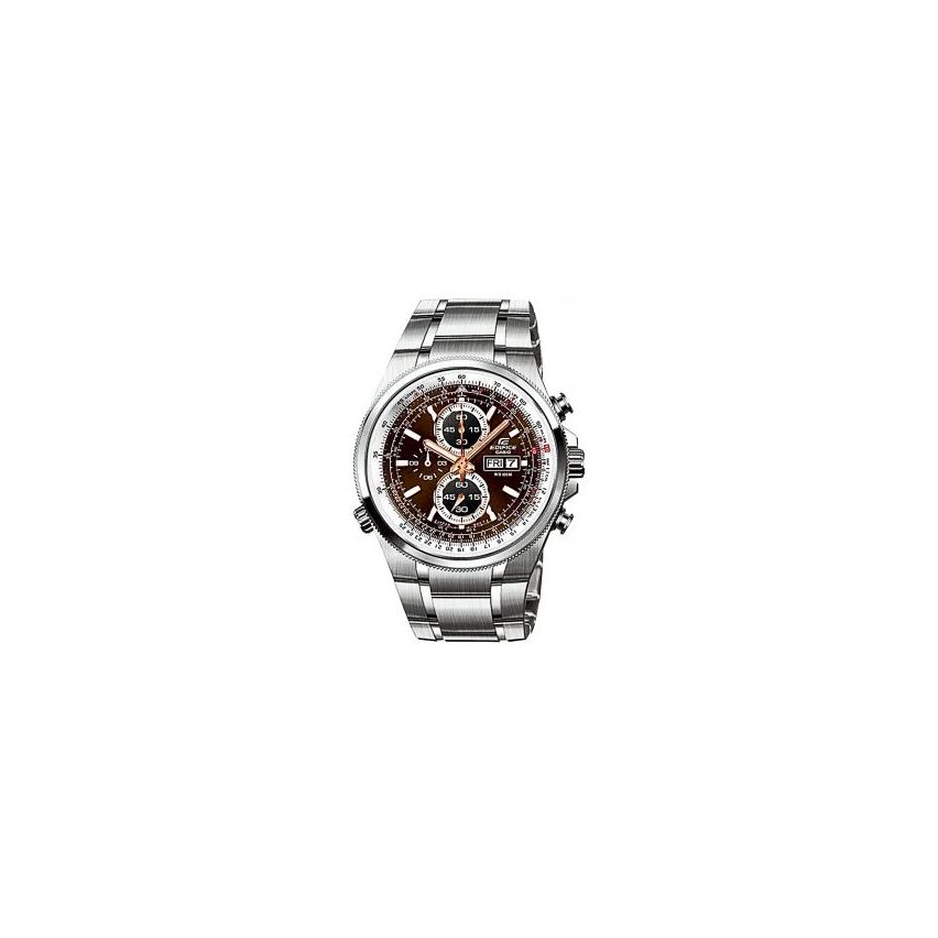 Casio EFR-510D-5AVEF е много добър модел от серията EdificeКорпусът и верижката са изработени от неръждаема стомана Casio EFR-510D-5AVEF е с луминесцентно покритие, осигуряващо продължително осветяване на тъмно дори и след кратко излагане на светлина Той е аналогов и показва час, минути и секунди Часовника има минерално стъкло, устойчиво на надрасквания EDIFICE лого е щамповано върху короната, задния капак и закопчалката Притежава много практични функции - хронометър/ изминалото време се измерва с точност от 1/20-та от секундата, за максимален период от един час /, хронограф, текущата дата и ден от седмицата и е водоустойчив на 10 bar/ перфектен за плуване и гмуркане с шнорхел/ Този часовник има двойно закопчаване - така той никога няма да може да се откопчае сам при каквито и да е условия.