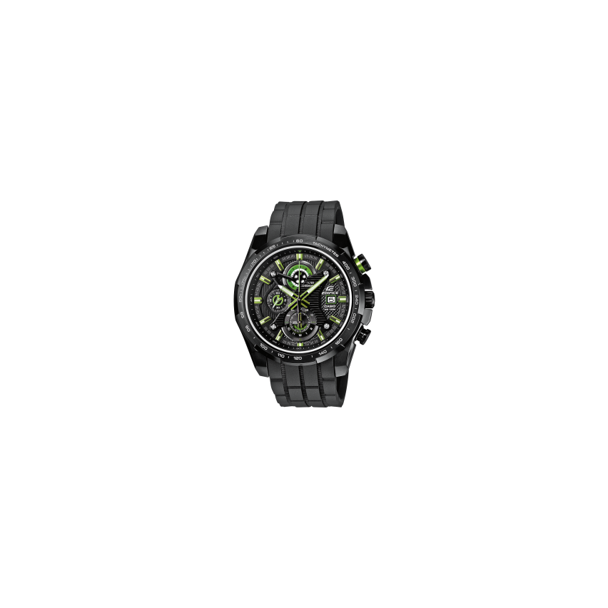 Casio EFR-523PB-1AVEF е супер добър модел от серията EdificeКаишката е изработена от полимерен материал, а корпусът от оксидирана черна стомана Casio EFR-523PB-1AVEF е с минерално стъкло, устойчиво на надрасквания Луминесцентното покритие осигурява продължително осветяване на тъмно, дори и след кратко излагане на светлина Той е аналогов и показва час, минути и секунди EDIFICE лого е щамповано върху короната, задния капак и закопчалката Притежава много практични функции - хронометър/ изминалото време се измерва с точност от 1/20-та от секундата, за максимален период от 30 минути /, хронограф, тахиметър, текущата дата се показва в прозорец на циферблата и е водоустойчив на 10 bar/ перфектен за плуване и гмуркане с шнорхел/ Този часовник има завинтване на коронката за сверяване, за по голяма водоустойчивост За да научите повече, свалете си Упътването за модела от нашия сайт.