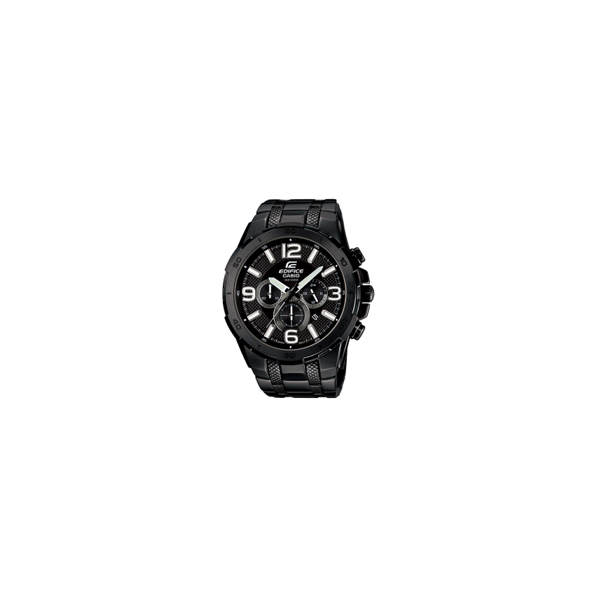 Casio EFR-538D-1AV е много добър модел от серията EdificeКорпусът и верижката са изработени изцяло от оксидирана черна стомана Casio EFR-538D-1AV е с черен циферблат, което го прави уникален ръчен часовник, с изискан и модерен дизайн Луминесцентно покритие, осигуряващо продължително осветяване на тъмно дори и след кратко излагане на светлина Той е аналогов и показва час, минути и секунди Часовника има минерално стъкло, устойчиво на надрасквания Притежава много практични функции - хронометър, показва датата и ден на дисплея и е водоустойчив на 10 bar Логото на часовника е щамповано на задния капак, короната и закопчалката Всичките му изброени функции и качества го правят много интересен и търсен.