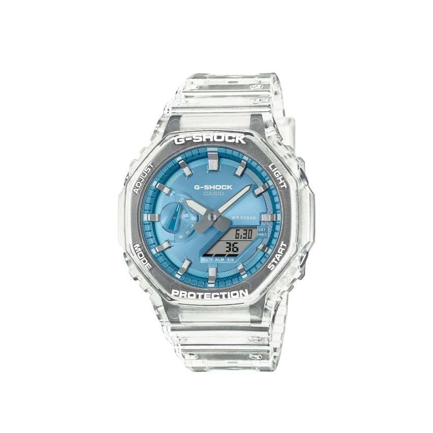 - Часовниците от серията G-Shock GA-2100 се отличават с емблематичния си осмоъгълен дизайн и иновативната Carbon Core Guard конструкция – символи на здравина, лекота и стил.