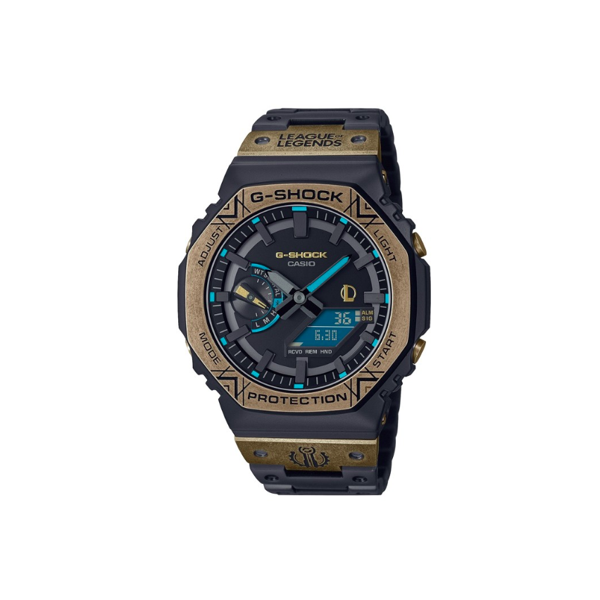 - Ефектни сини детайли са запечатани върху циферблата, като те пренасят към света на магията, науката и технологиите на Hextech в света на G-Shock.