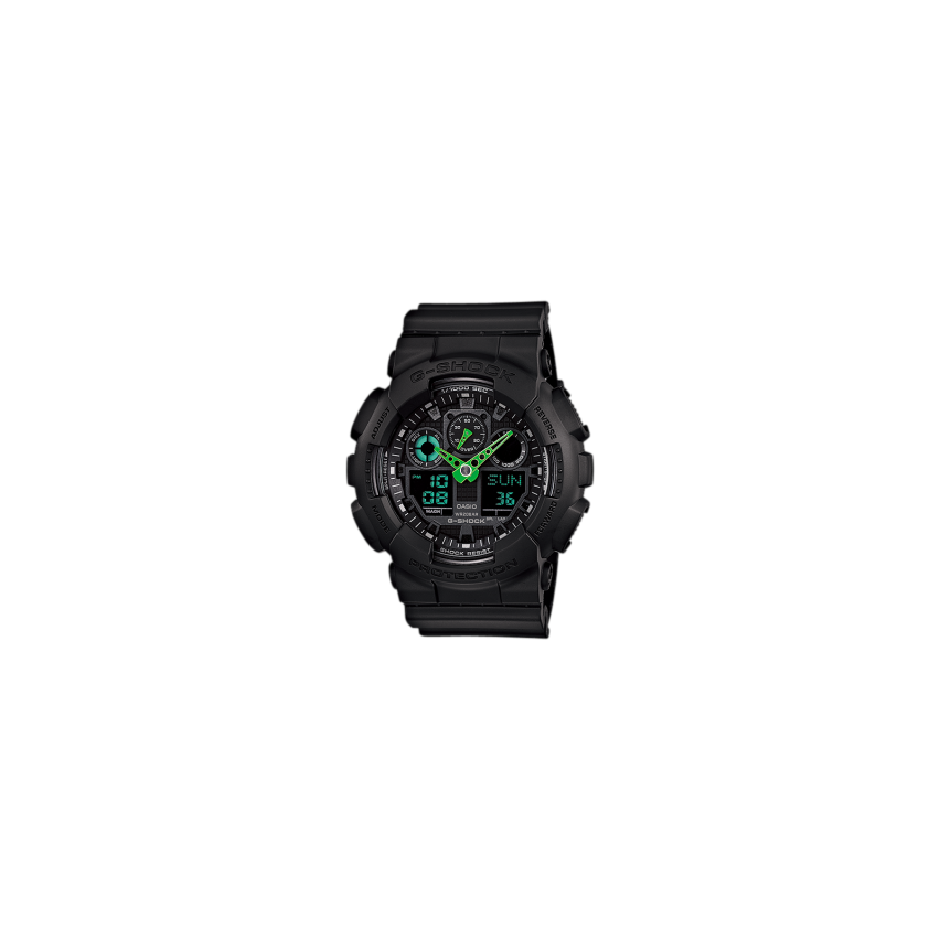 Casio GA-100C-1A3 е модел, който няма как да не забележите! Casio GA-100C-1A3 е член на популярната G-Shock серия GA-100 известна с уникалния си 3D дизайн съчетаващ в себе си аналогови и дигитални показанияКорпусът предвидливо е проектиран така, че да предпазва иначе големите бутони от случайно натискане А когато решите все пак да ги използвате, ще забележите колко удобни са те Трябва да отбележим, че модела има висока водоустойчивост - 20 bar, както и специална защита против магнитни полета Не на последно място е и неговата удароустойчивост Чрез автоматичното led осветяване, може да прочетете показанията дори в пълен мрак, без да се налага да търсите копчето за осветяване Разбира се всички популярни функции също присъстват - хронометър, таймер, световно време, 5 броя аларми, и други.