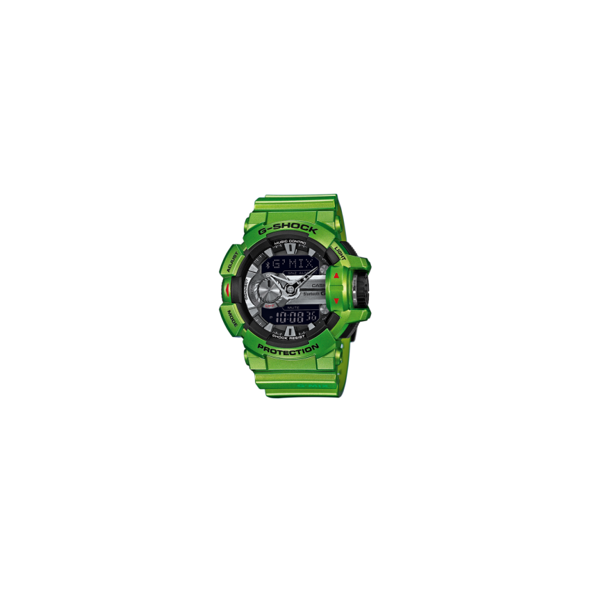 - Технологията на енергоспестяващи позволява достъп до множество удобни функции.Casio GBA-400-3BER е удароустойчив-засилена конструкция защитава часовника от удари и вибрации, има и магнитна устойчивост