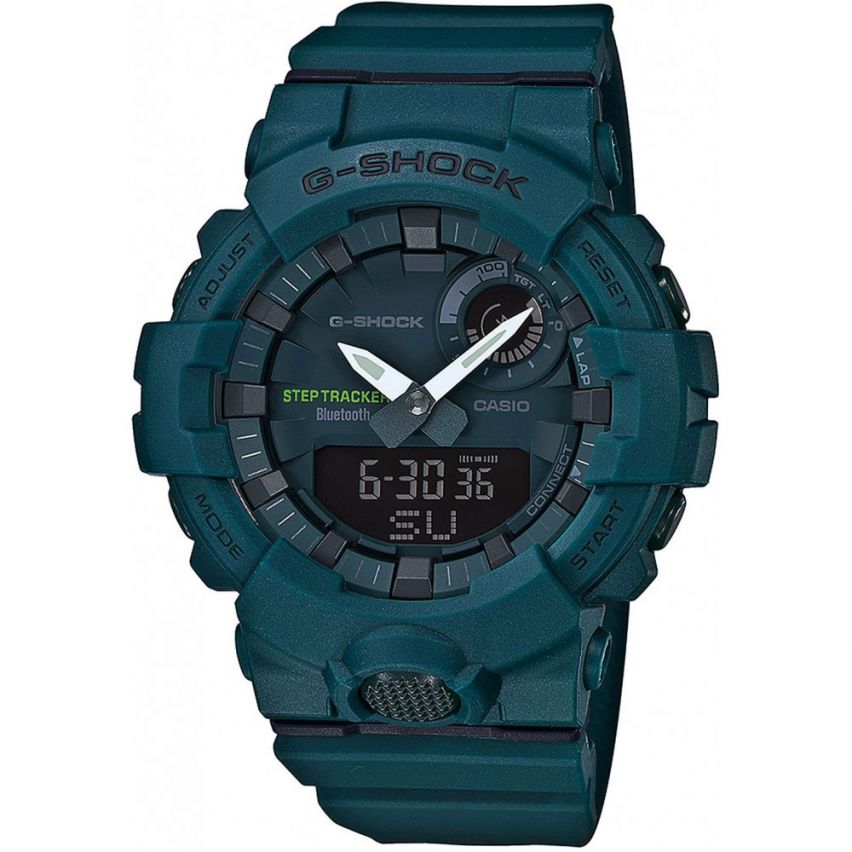- G-SHOCK представят новият комбиниран аналогов/дигитален модел със STEP TRACKER функция GВA-800. Часовника е устоичив на удар и вибрация с минерално стъкло и 20 бара водоустойчивост. Super-Illuminator, втора часова зона, хронометър, крачкомер, функция за трансфер на данни към вашият мобилен телефон. Разлполага и с таймер, 5 дневни аларми, автоматичен календар и живот на батерията около 2 години. Тегло - 63гр.